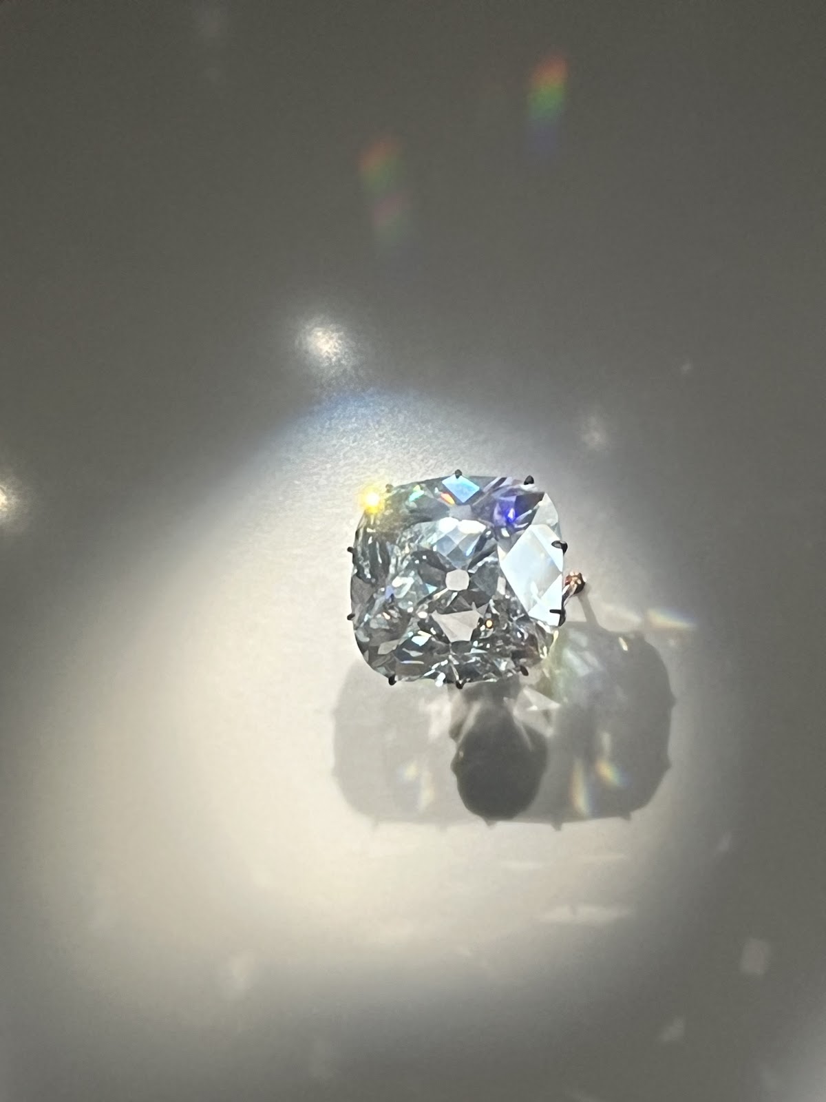 If you've ever wondered about what the big deal is with diamonds, take a look at this one - Le Regent. the diamond is in a stationary case. The colors and reflections change as a result of my slight movement to view it at different angles. It was amazing! There had to be fifteen other people staring at it, but when they saw what Greg was doing, they copied him and he could hear their ooohs and aaaahs. This diamond is over 140 carats.